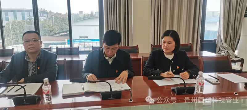2025年3月 28 日,贵州国塑科技管业有限责任公司党支部召开了一场意义非凡的专题组织生活会,深入学习贯彻习近平总书记考察贵州时的重要讲话精神以及中央八项规定,进一步加强党的作风建设,推动公司党建工作再上新台阶。